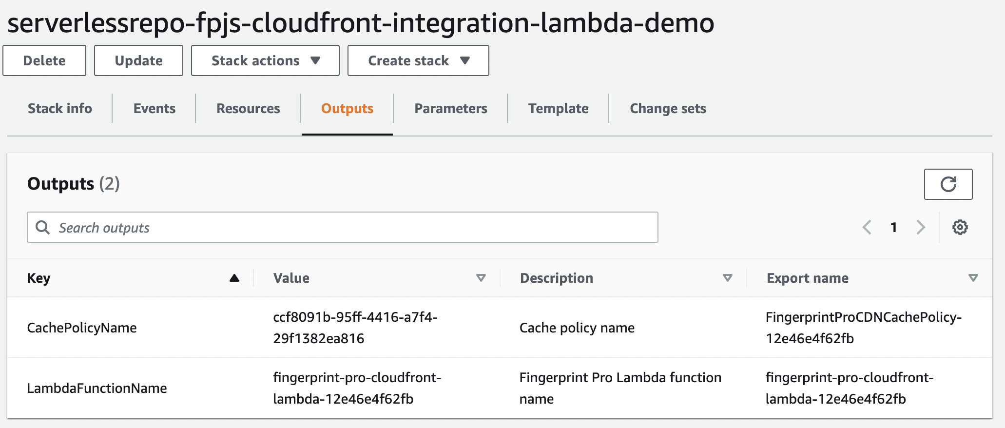 CloudFormation outputs.