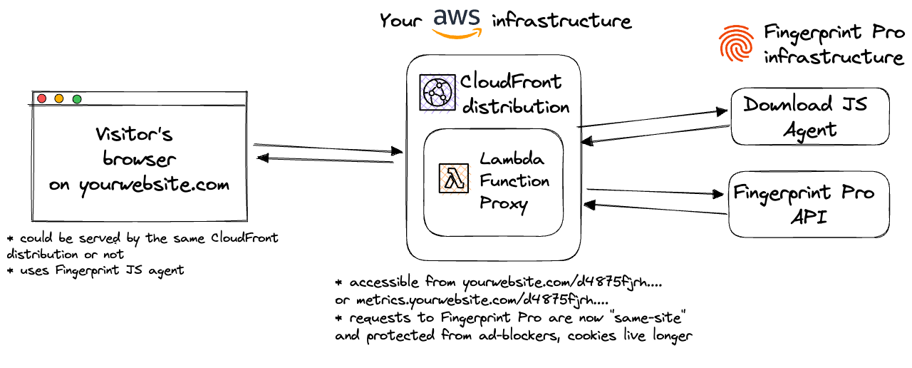 - AWS Lambda@Edge Function that handles proxying requests to Fingerprint resources.
