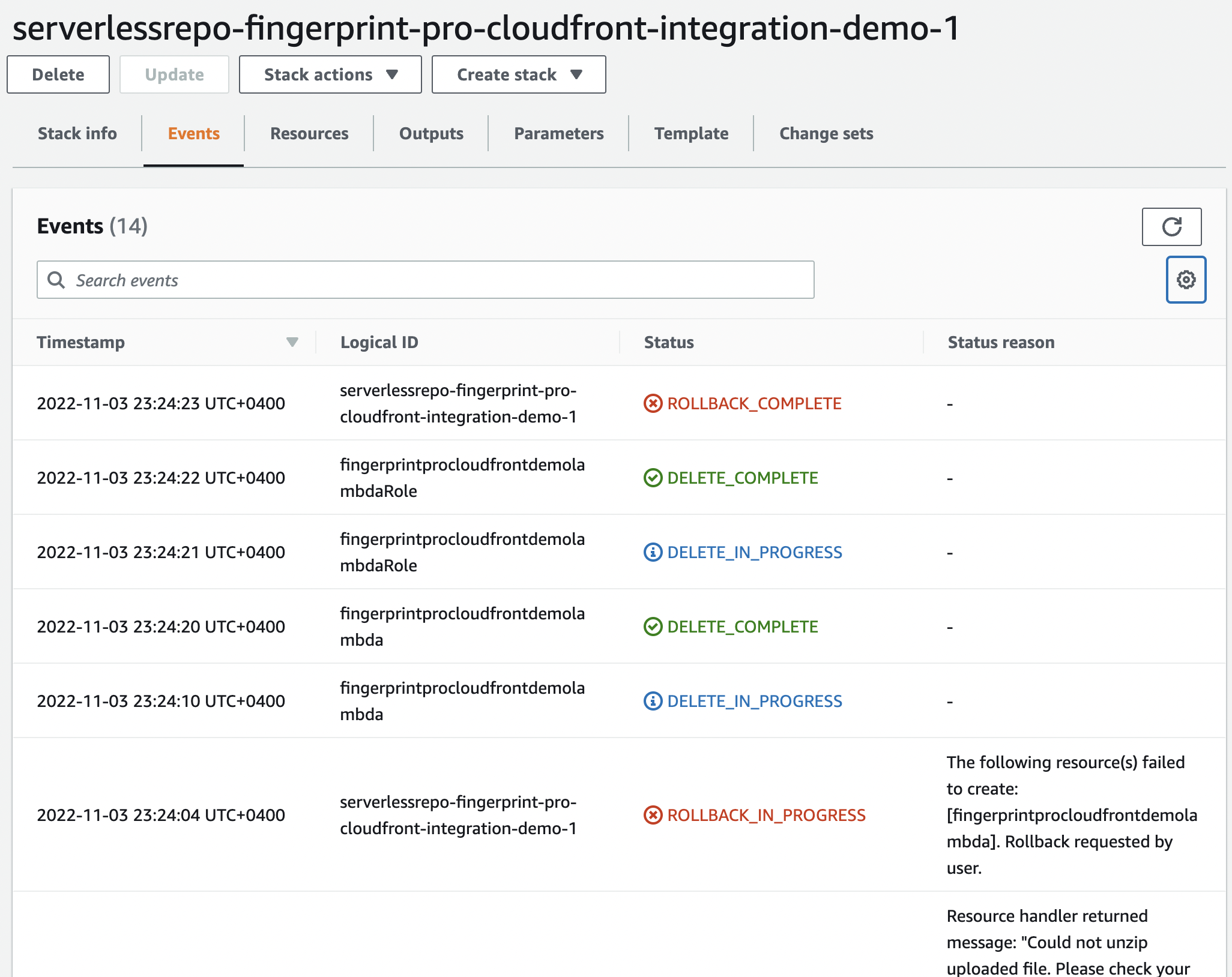 CloudFormation errors.