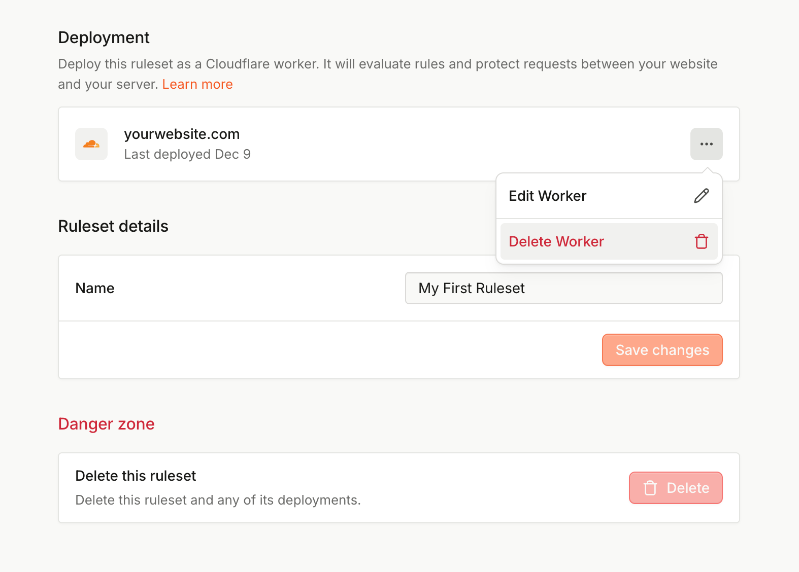 - To update rules, make changes to the Ruleset and save it. It might take up to 60 seconds for the changes to take effect on your website.