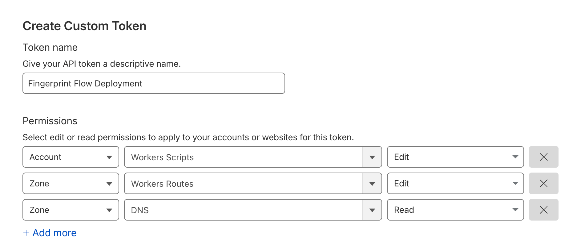 - Using your Cloudflare API token and credentials, Fingerprint deploys a Cloudflare worker on your domain, which intercepts HTTP requests between browsers accessing your website and the origin server.