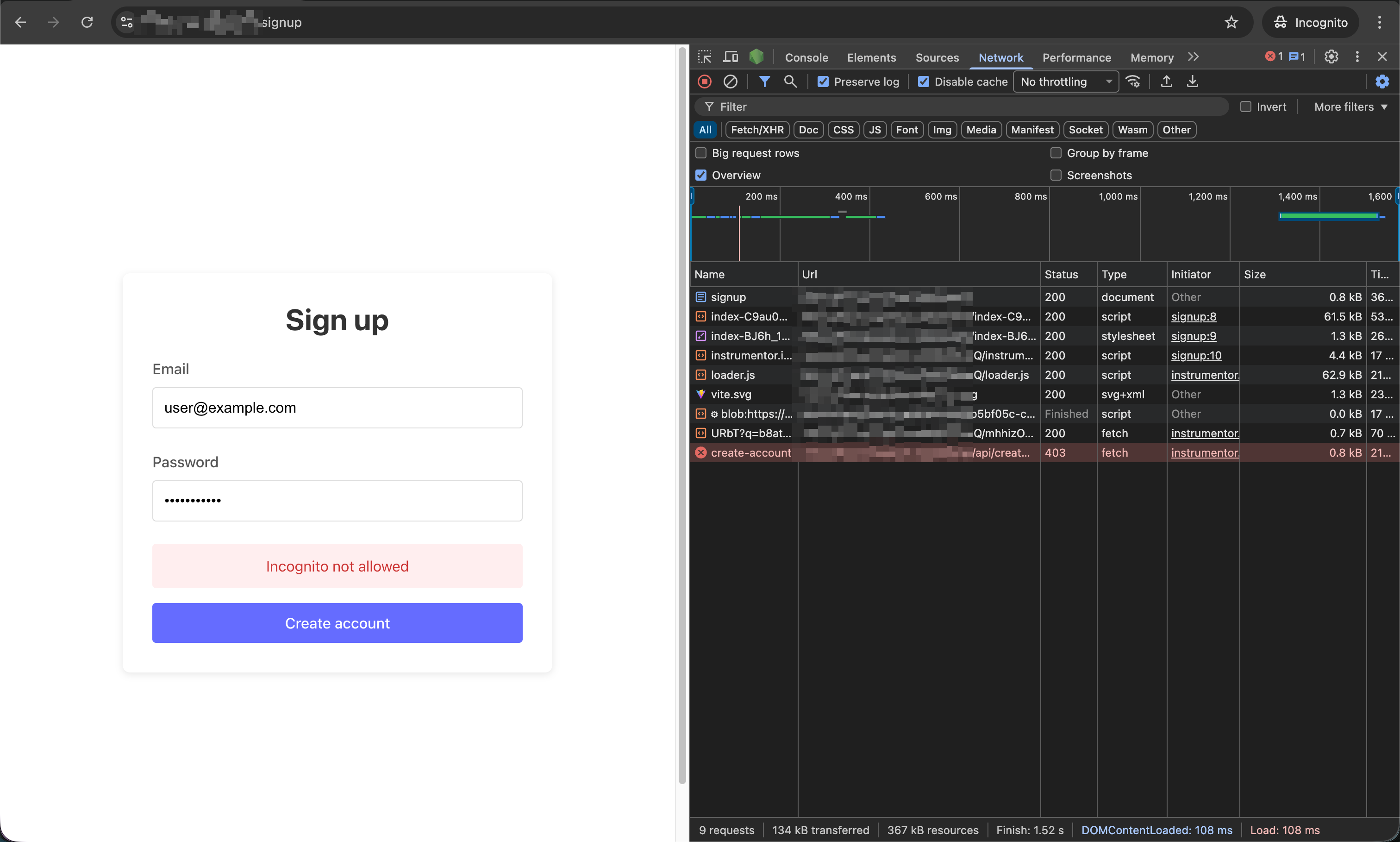 create-accountAPI call made by the page if the bot clicks “Create account”.