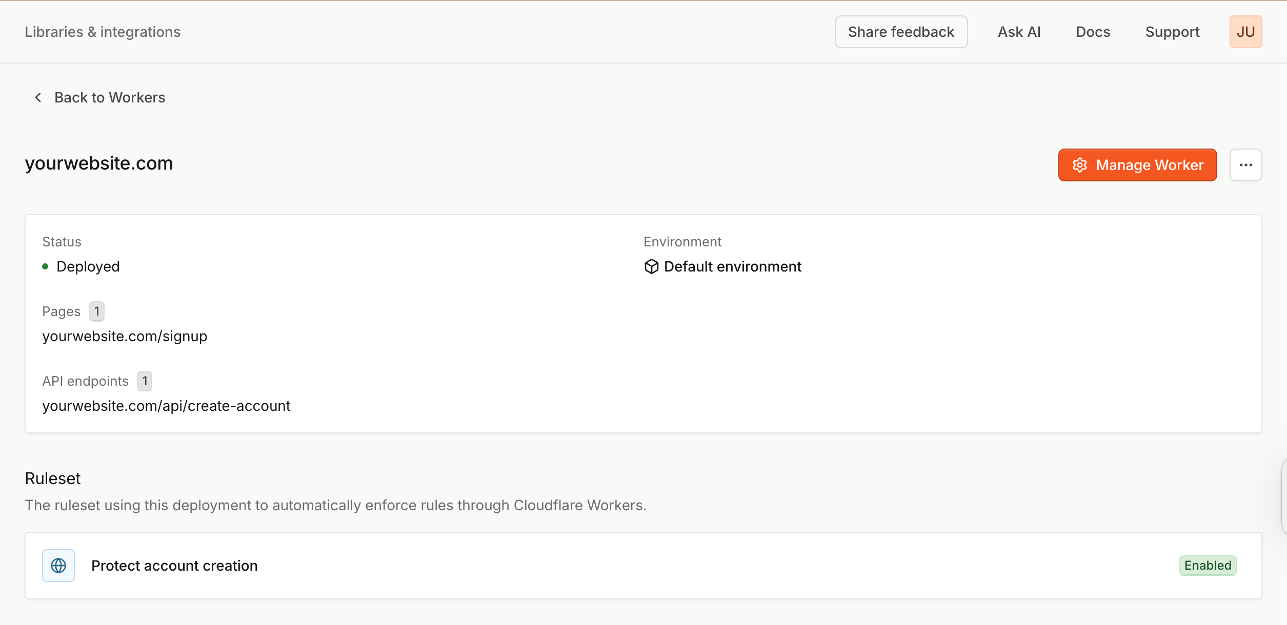 - Click Create Cloudflare worker.