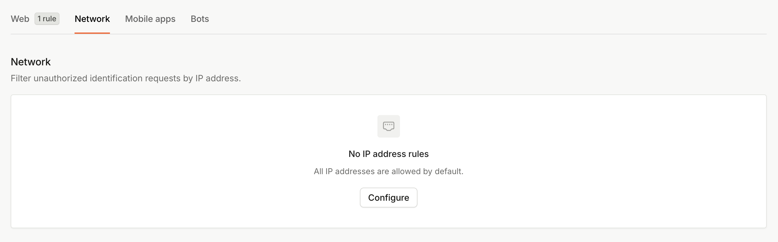 - Under No IP address rules, click Configure.