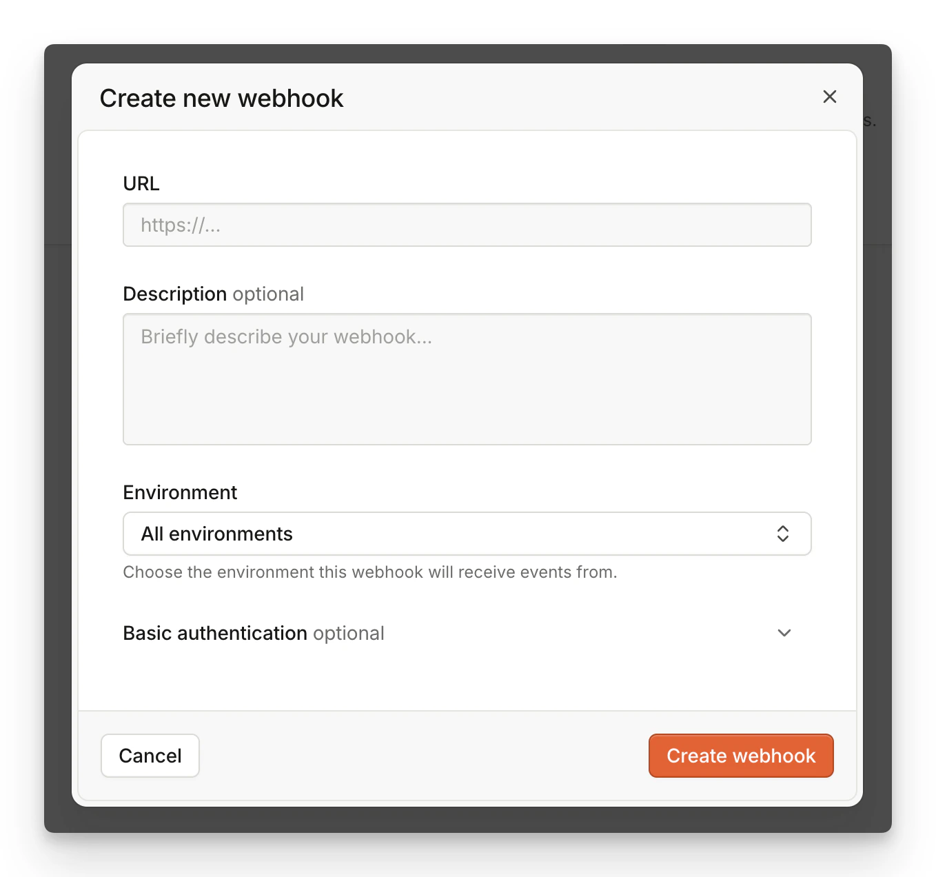 - If you select an environment, your webhook will be only report on events from a matching environment.